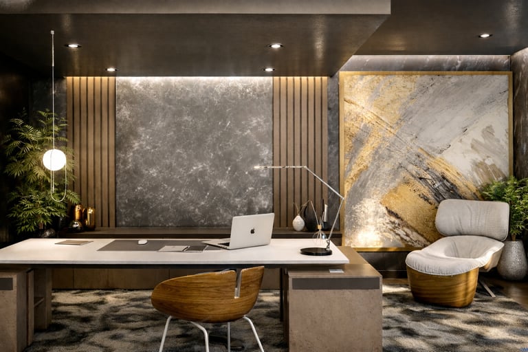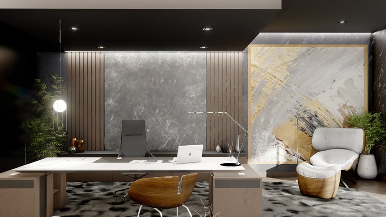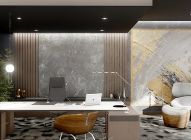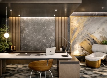 Las oficinas se diseñaron como un espacio que comunica jerarquía y solidez, reflejando los valores de la empresa: firmeza, confianza y seguridad. La propuesta mantiene una lectura clara de la identidad del cliente, equilibrando representación corporativa y funcionalidad.