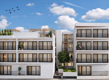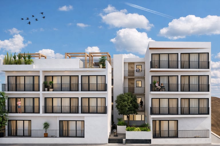El proyecto integra una plaza existente frente al lote como parte fundamental del conjunto, entendiendo ambos espacios como una sola intervención urbana. Esta relación permite potenciar el valor del desarrollo, activando el espacio público y fortaleciendo el vínculo entre los departamentos y su entorno inmediato.